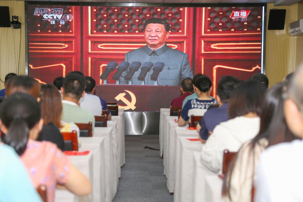 学院师生员工纷纷通过网络、新媒体、电视、广播以及“学习强国”平台等各种媒体平台,认真收听收看庆祝中国共产党成立100周年大会直播。学院党政班子成员、行政楼全体党员教师在行政楼206会议室集中观看直播。各二级学院设立分会场,在会议室、党员活动室、教室等场地组织师生收听收看。不少学生还在学院图书馆、食堂、寝室等场所收听收看庆祝中国共产党成立100周年大会直播。