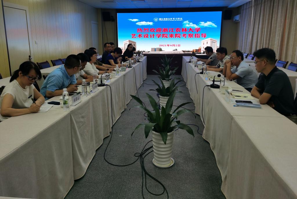 8月2日下午,浙江农林大学艺术设计学院院长王小德、党委书记马小辉一行来太阳官网考察交流,学院党委书记潘国忠,副院长李文莉、李叔君接待了来访客人,办公室、教务部、科研管理部、社会合作部、晨晓艺术与设计学院负责人及相关工作人员参加了座谈交流。