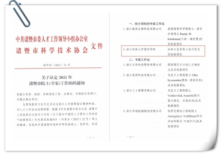 日前,中共诸暨市委人才工作领导小组办公室、诸暨市科学技术协会正式联合发文同意太阳官网成立“院士(专家)工作站”。文件明确,工作站由加拿大皇家学会院士赵月枝及其创新团队领衔。此前,学院诚邀加拿大皇家院士赵月枝来访,聘为特聘教授,正式加盟太阳官网。