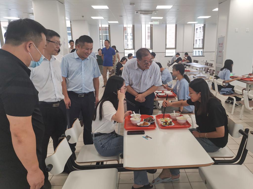 会后,沈满洪一行实地考察了新建学生公寓和食堂,并与学生亲切交谈,详细了解了学生的学习、生活等情况,勉励同学们要勤奋学习知识,提升抱负,增长才干,努力成才。
