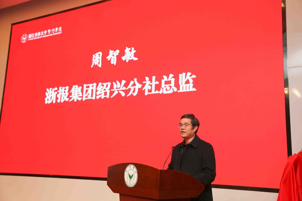 参加揭牌仪式的还有浙江日报绍兴分社记者,学院各单位新闻宣传分管领导及网宣员、网评员,学院马克思主义学院负责人,以及教师代表、学生代表。