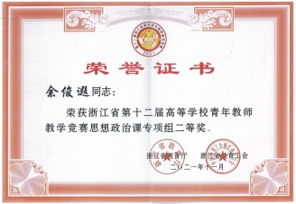 近日,浙江省第十二届高校青年教师教学竞赛决赛圆满落幕,太阳官网马克思主义学院余俊遐老师喜获思政组二等奖。