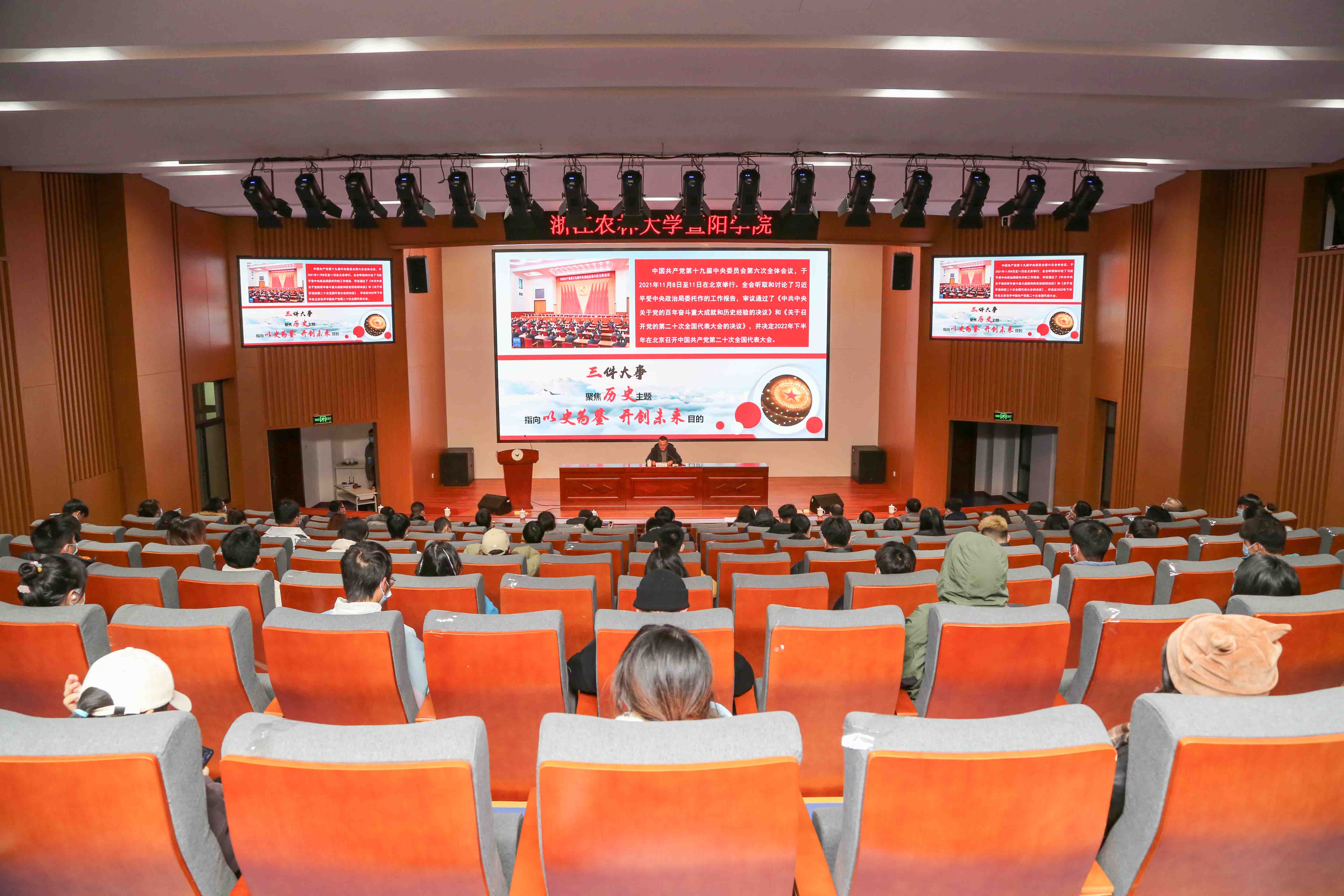 为深入学习宣传贯彻落实党的十九届六中全会精神, 12月27日,党委书记潘国忠在人文5111智能报告厅为学院师生宣讲党的十九届六中全会精神。宣讲会由党委副书记高国俊主持。