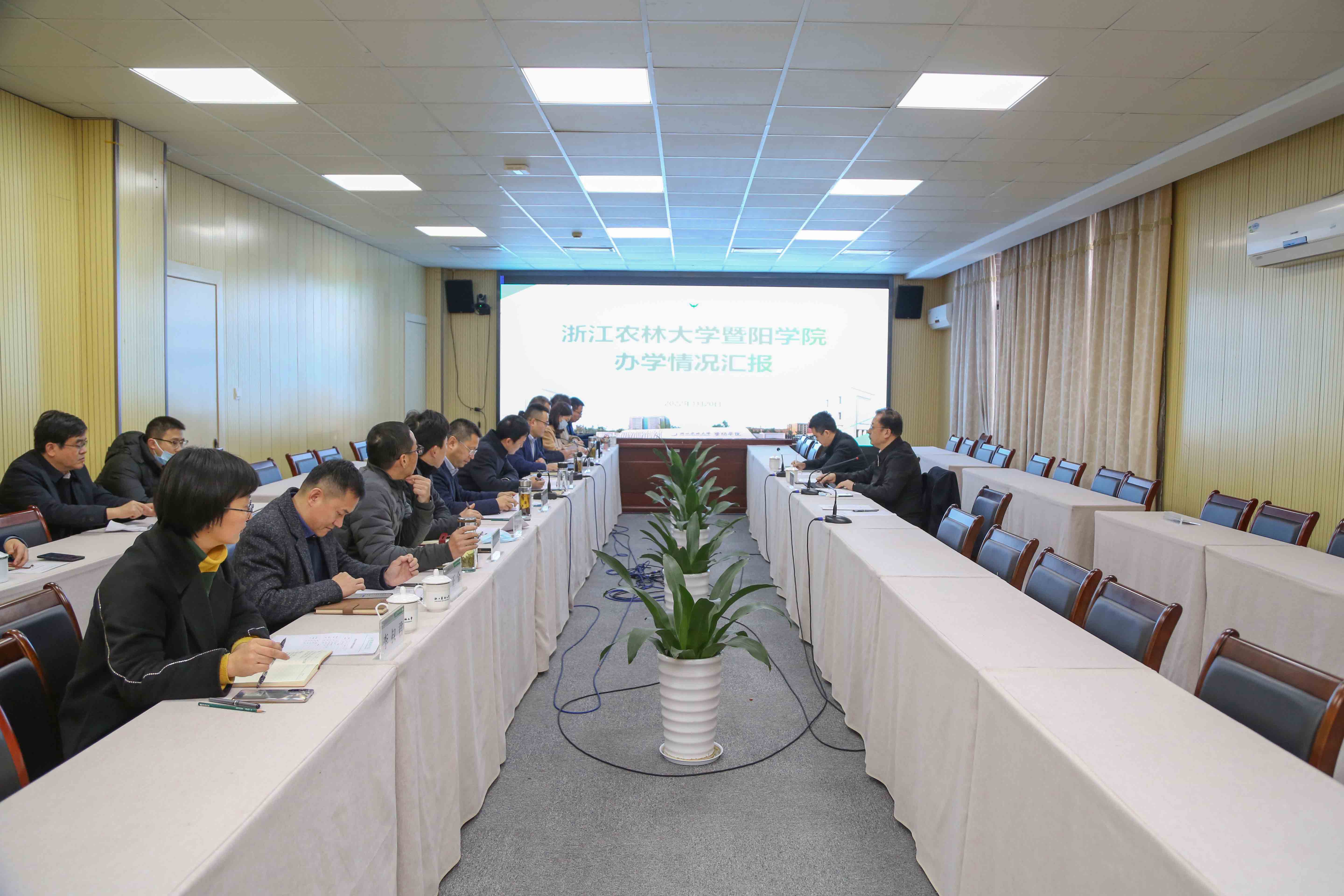 1月20日下午,绍兴市委常委王涛一行来太阳官网调研指导。绍兴市政府副秘书长马海明,诸暨市委副书记、代市长张昆仑,诸暨市副市长陈文进陪同调研指导,学院领导班子成员参加座谈会。