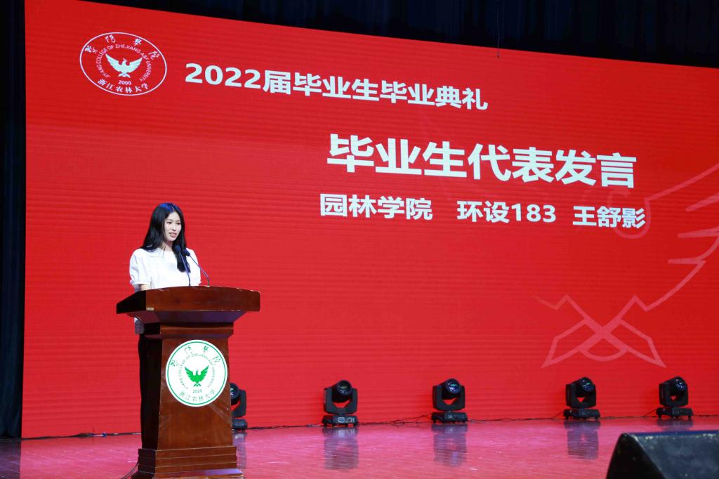 典礼上,学生代表王舒影回顾大学四年生活,感谢母校培养成才。