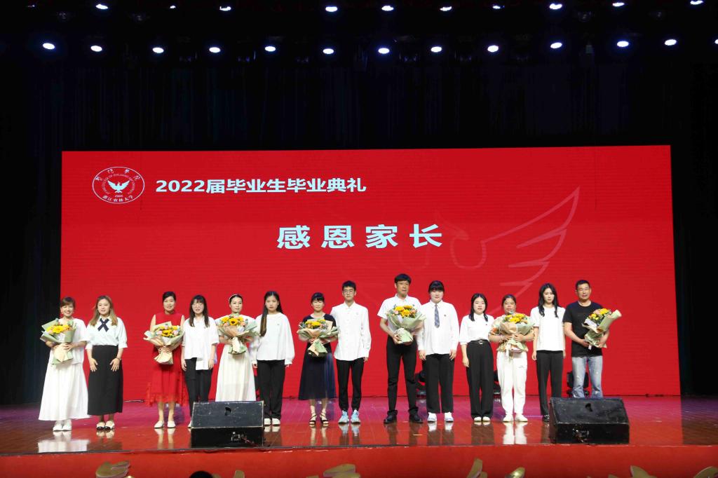 典礼上,毕业生为教师代表、辅导员代表、后勤保障工作人员及家长代表送上鲜花。