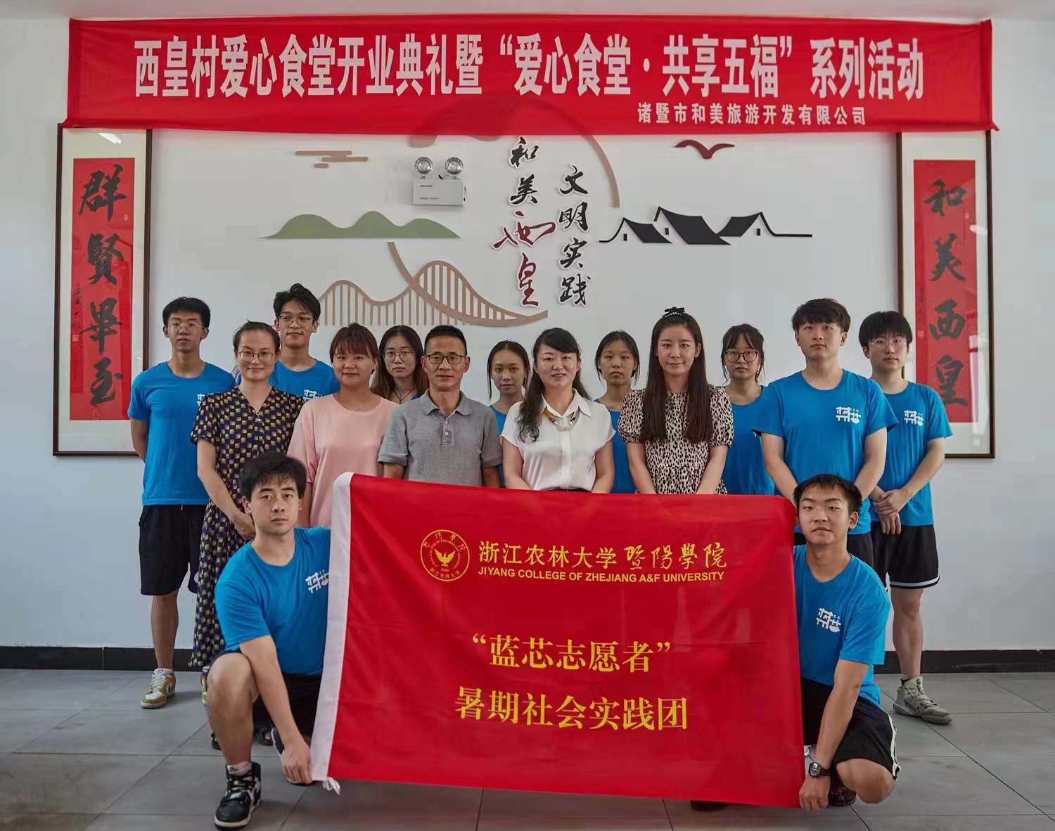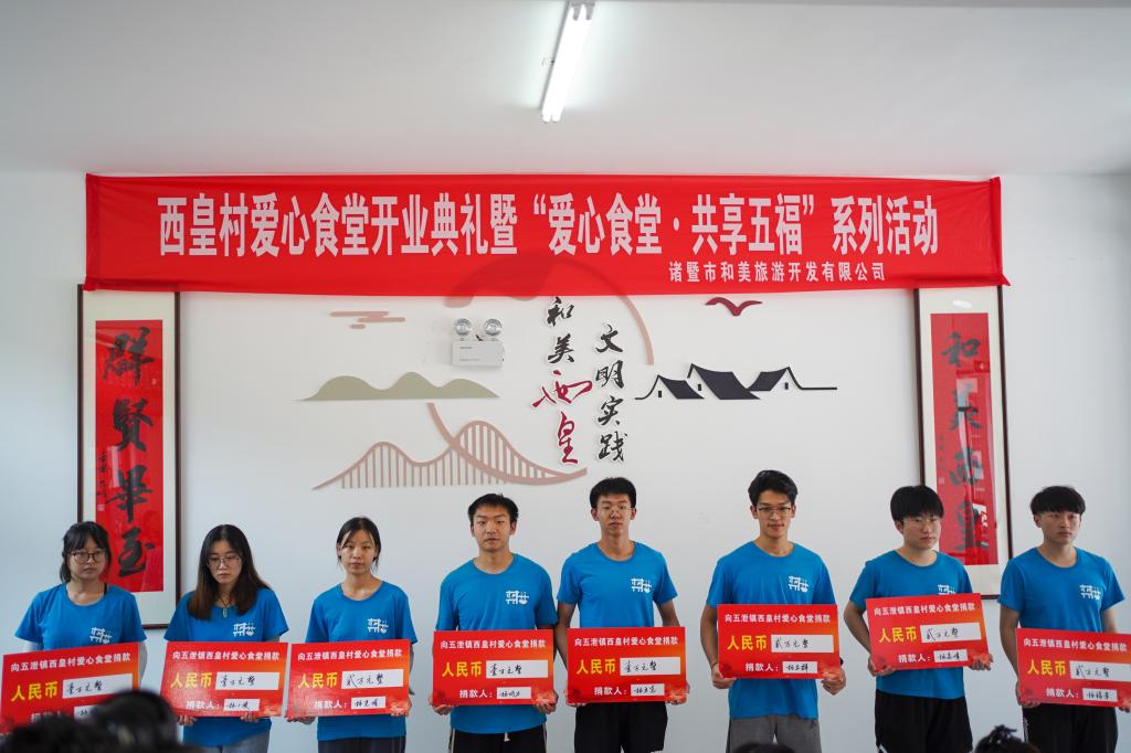 走访期间,洪昀一行参加了西皇村爱心食堂开业典礼。五泄镇党委副书记陈官珂,西皇村各村干部,工程技术学院社会实践团师生参加仪式。仪式上,洪昀和陈官珂共同为爱心食堂揭牌。活动现场,工程技术学院与五泄镇人民政府达成志愿者联盟,现场完成了授旗仪式。