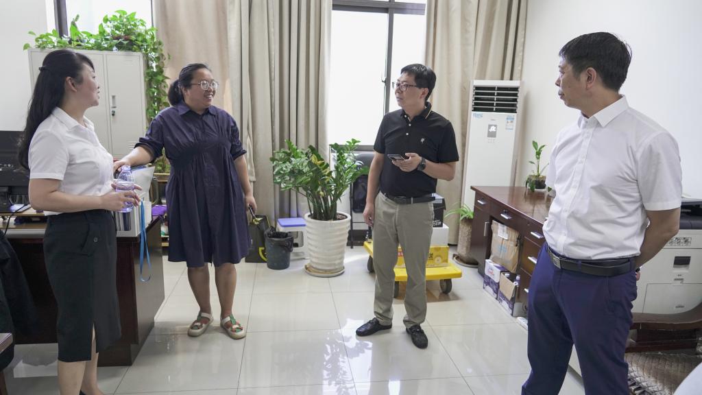院领导一行先后走访慰问招生办公室、学校大门保卫室、考研教室、高配电房、体育中心、学生社区、新建食堂及卫生所,听取了相关负责人的工作汇报,详细了解了招生录取工作进展、校园疫情防控举措落实、校园安全保卫、暑期留校学生管理、考研学生学习、暑期食堂就餐供应等情况,并提出具体要求和意见建议。院领导对留校学生利用暑期复习备考表示充分肯定,叮嘱同学们要劳逸结合、积极备考;对暑期坚持在一线岗位的教职员工表示感谢,希望大家注意防暑降温和身体健康,在做好工作的同时统筹合理安排轮休。