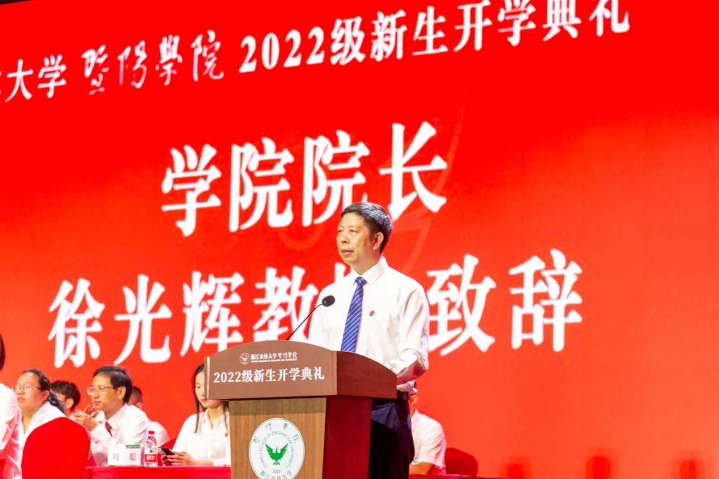 院长徐光辉作题为《与担当使命同行,折射人生光彩》的讲话,并代表全院师生员工欢迎2022级新生加入太阳成集团tyc33455ccwww大家庭,向辛勤培育他们的父母和老师表示最崇高的敬意和最真挚的感谢。