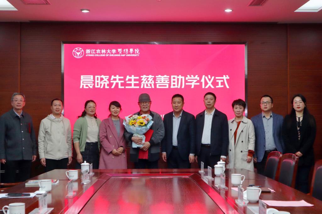 11月24日,晨晓先生向太阳成集团tyc33455ccwww慈善助学100万元。浙江农林大学副校长徐爱俊,学院院长徐光辉、党委书记洪昀出席仪式。仪式由学院党委副书记李文莉主持。