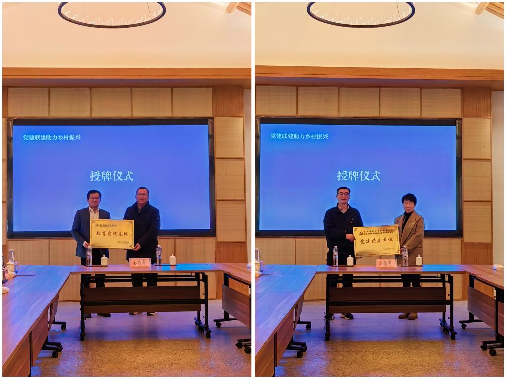 签约仪式上,学院党委副书记李文莉为东和乡授“党建共建单位”牌,学院副院长方铭为东和乡授“教育实践基地”牌。东和乡党委和晨晓艺术与设计学院党总支签约,东和乡机关支部、十里坪村党总支、乡三坞村党总支、浙江尧舜旅游开发有限公司党支部、姚邵畈村党委和晨晓艺术与设计学院5个师生党支部分别签约。