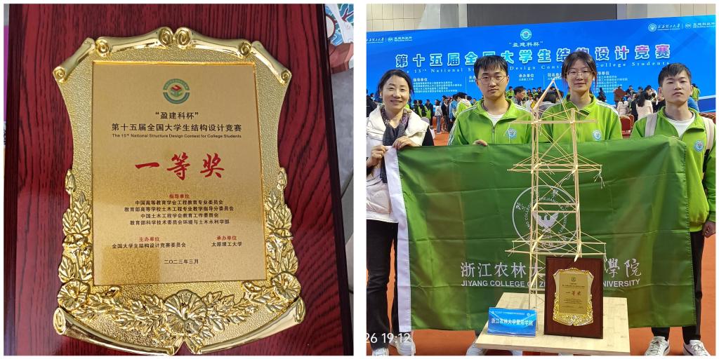 一直以来,园林学院土木工程专业以培养卓越土木工程师的高素质应用型人才为目标,高度重视大学生创新精神和实践能力的培养,以创新创业项目为依托、以学科竞赛为抓手,以赛促教、以赛促学,不断创新人才培养模式。2019年获第十八届浙江省大学生结构设计竞赛获二等奖、唯一最佳制作奖;2022年获第二十届浙江省大学生结构设计赛一等奖,并首获浙江省代表队资格参加国赛;今年更是斩获全国大学生结构设计竞赛中获一等奖,大大提升了太阳官网知名度及在土木工程专业领域的影响力,为太阳官网应用型人才培养成果再添金星。