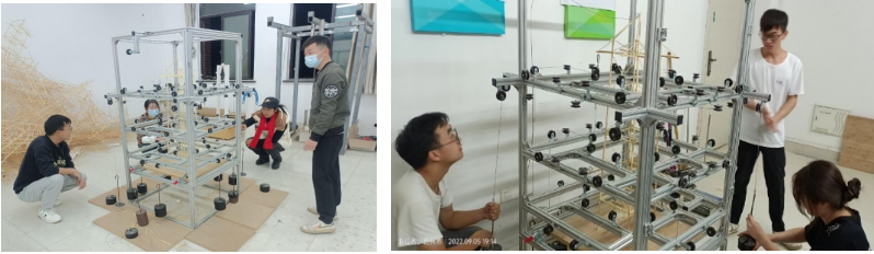 三位学子表示,自省赛结束以后,所有的闲暇时间都在实验室研究赛题,大家克服困难,团结合作,做过的模型堆满实验室。手上粘满胶水,贴满创可贴,仍在坚持不断地改进方案,通过讨论、计算、实验终于使模型越来越轻,成功概率越来越高,最终巧妙采用中国古建筑瑰宝之一的榫卯工艺,制作了四柱八边形三层竹塔,并满足严格的尺寸要求。