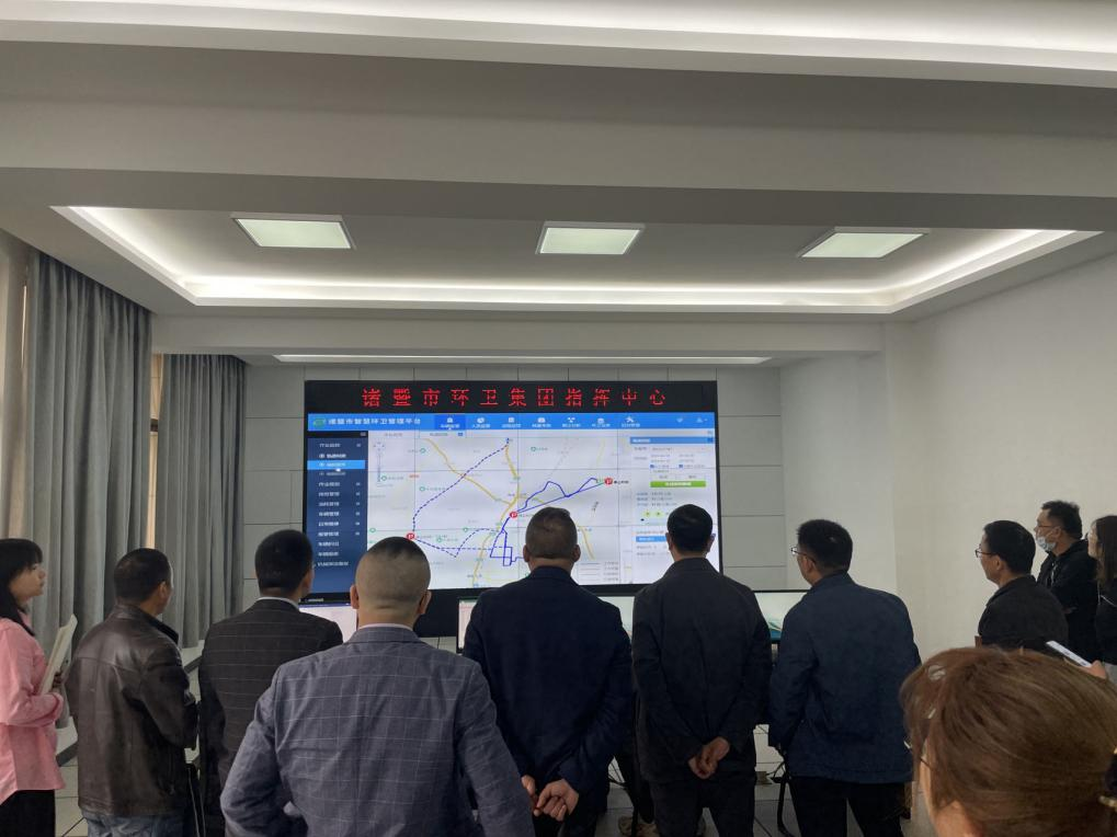 徐光辉一行现场观摩了诸暨市智慧环卫管理平台,并就人员监管、检查考核、环卫业务等方面做了广泛交流。