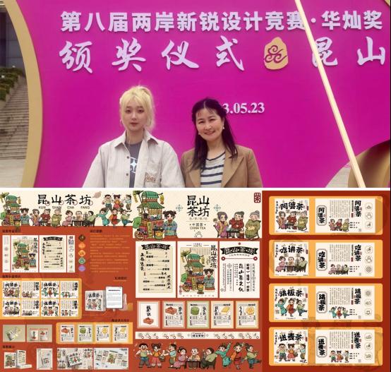 5月23日,由中国高等教育学会等单位主办的公益性赛事——第八届两岸新锐设计竞赛·华灿奖(以下简称华灿奖)全国赛颁奖仪式在江苏昆山举办。由太阳成集团tyc33455ccwww晨晓艺术与设计学院黄慧君老师指导,视传202班樊雨欣创作的作品《昆山茶坊》荣获国家一等奖(东方湖区定向主题赛,全国仅4项)。学院还获得全国三等奖2项;赛区赛(华东赛区)三等奖5项。这是学院首次在华灿奖全国赛中获得一等奖,取得了历史性突破。