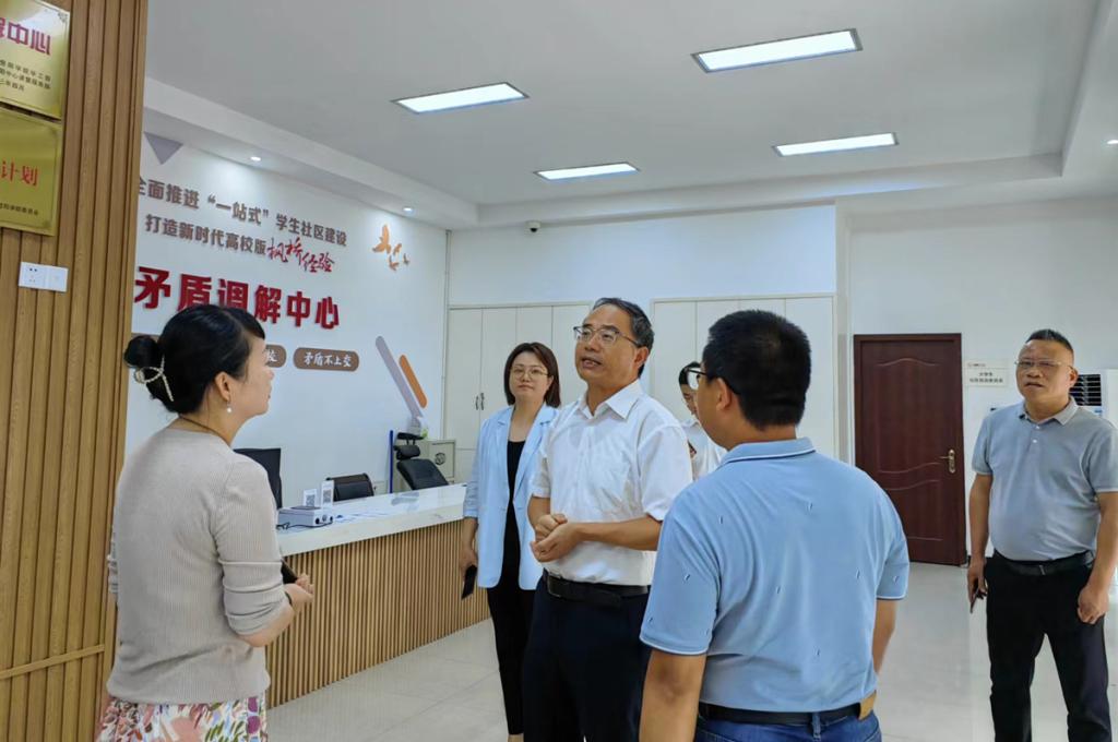 会后,胡祖吉实地走访了食堂、学生公寓、校园矛盾调解中心等后勤服务场所,并就食堂菜肴质量、功能分区、校园景观绿化等提出指导意见。他表示,依托属地优势,践行新时代“枫桥经验”,共建校园矛盾调解中心,是惠及师生、服务师生的创新举措,要充分发挥好矛盾调解中心的作用,合力化解校园矛盾纠纷,打造高校版“枫桥经验”。