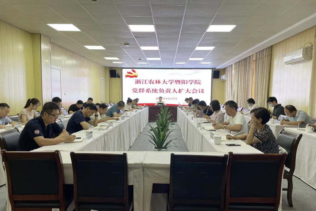 9月27日,学院召开党群系统负责人扩大会议。党委书记洪昀主持会议并讲话,党委副书记李文莉、纪委书记吴正金、党委副书记高国俊出席会议,相关职能部门和各党总支负责人参加会议。