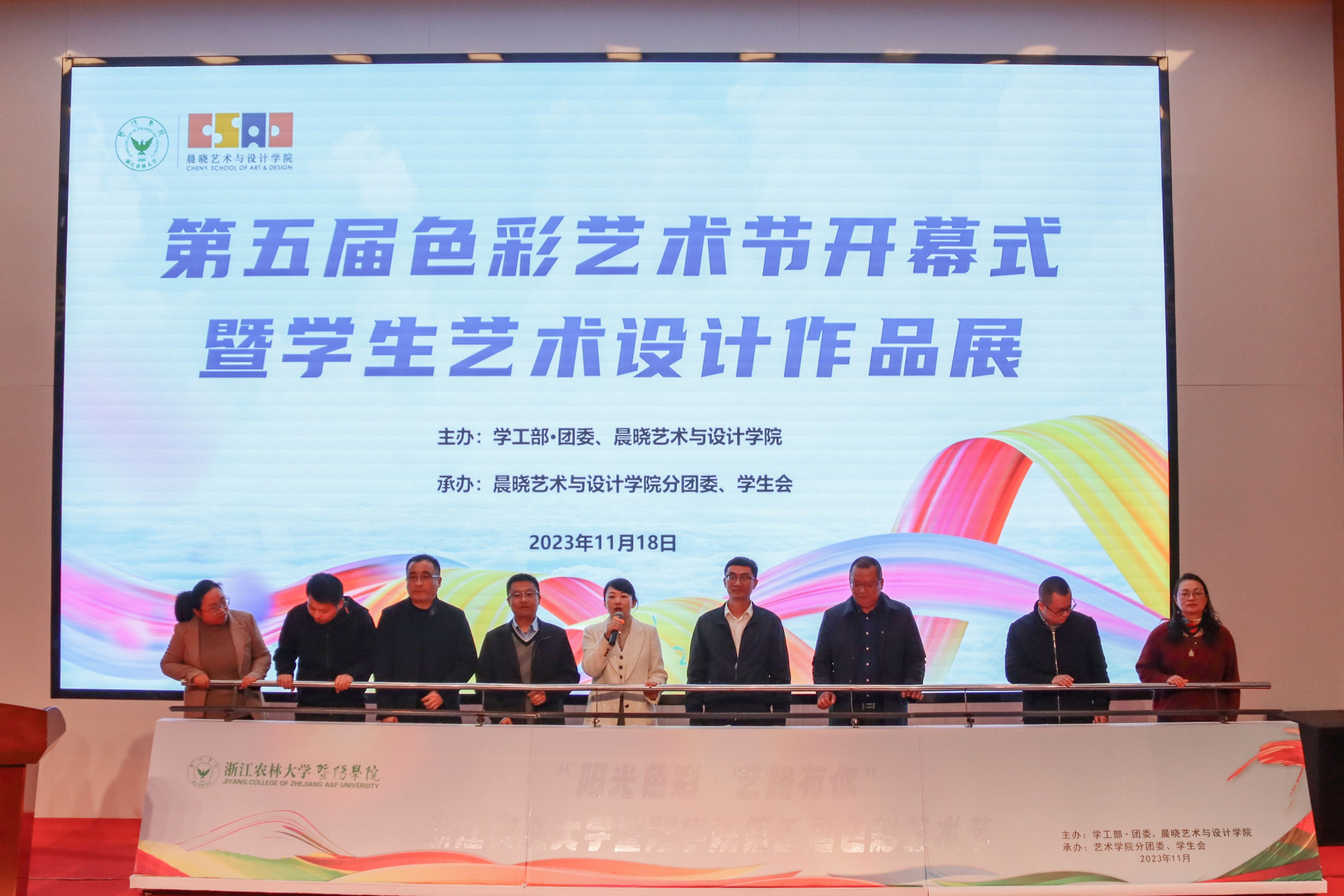 11月18日上午,学院第五届色彩艺术节开幕式暨学生艺术设计作品展在智能报告厅人文5111举行。学院党委书记洪昀、党委副书记高国俊、副院长方铭,诸暨市东和乡党委书记寿军岳、副乡长陈曦出席活动。相关职能部门和二级学院负责人,各二级学院分团委书记、团学指导老师,晨晓艺术与设计学院师生代表、合作单位代表、校友代表参加活动。开幕式由晨晓艺术与设计学院党总支负责人主持。