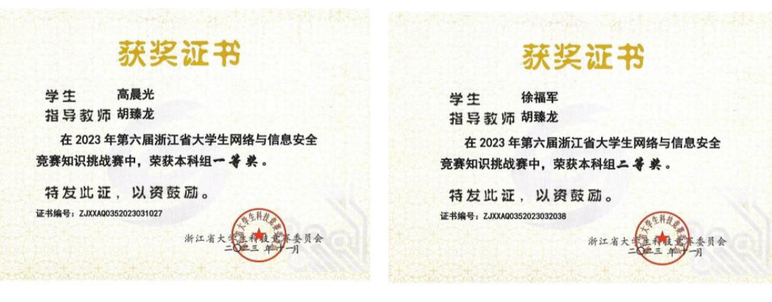 近日,由浙江省大学生科技竞赛委员会主办、杭州电子科技大学及嘉兴职业技术学院共同承办、安恒信息技术股份有限公司协办的第六届浙江省大学生网络与信息安全竞赛决赛在嘉兴市成功举行。学院首次参加该项比赛,由工程技术学院教师胡臻龙指导的计算机专业学生高晨光、徐福军分别荣获总决赛一等奖和二等奖的佳绩。