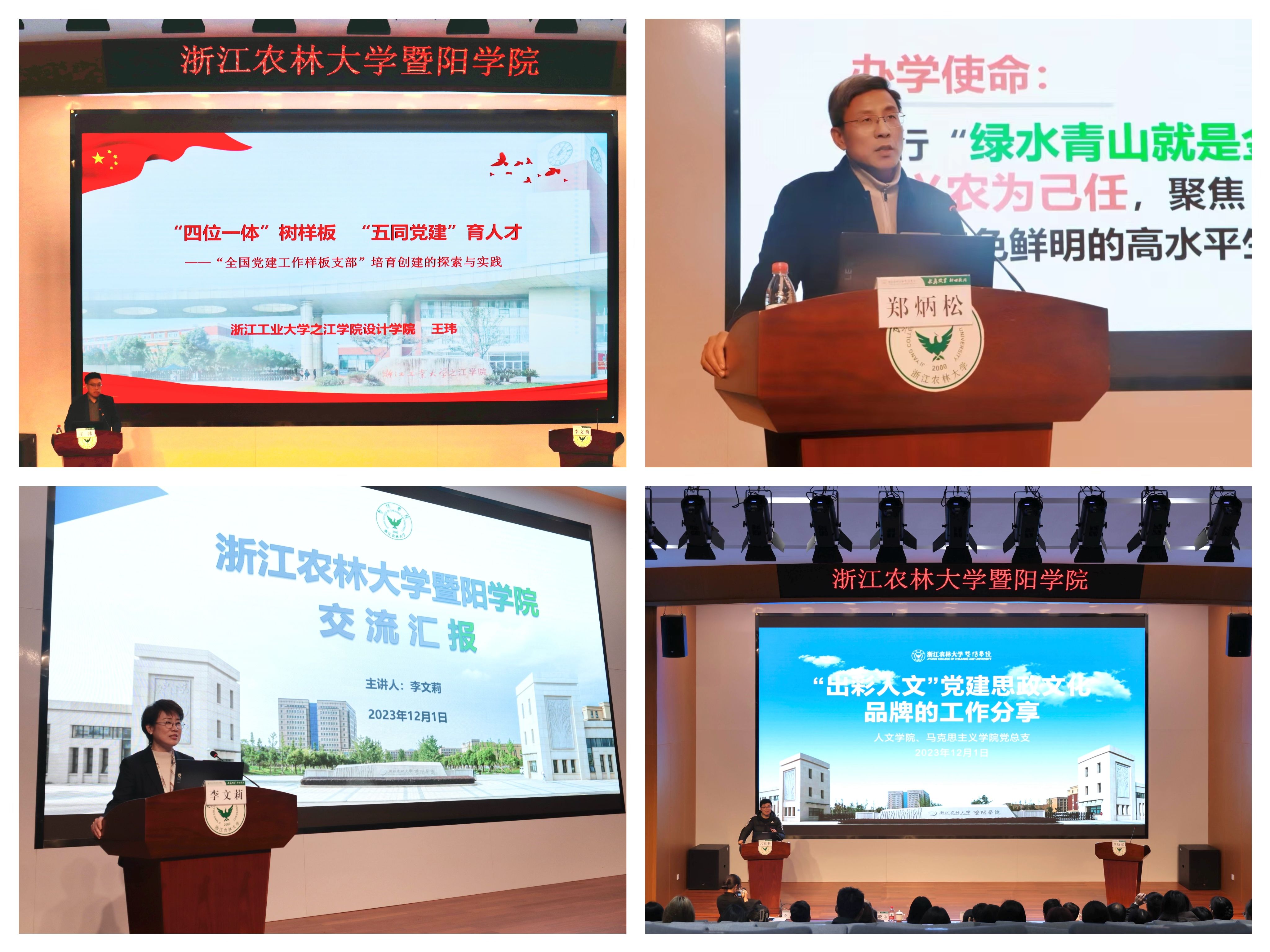此次培训邀请了浙江农林大学林业与生物技术学院党委书记、全国高校“双带头人”教师党支部书记工作室党支部书记郑炳松和浙江工业大学之江学院设计学院党总支副书记、全国党建工作样板党支部书记王玮作专题培训。李文莉介绍了学院基本情况、主要办学成效及党建工作特色做法,人文学院、马克思主义学院党总支相关负责人汇报了省级标杆院系培育创建情况。