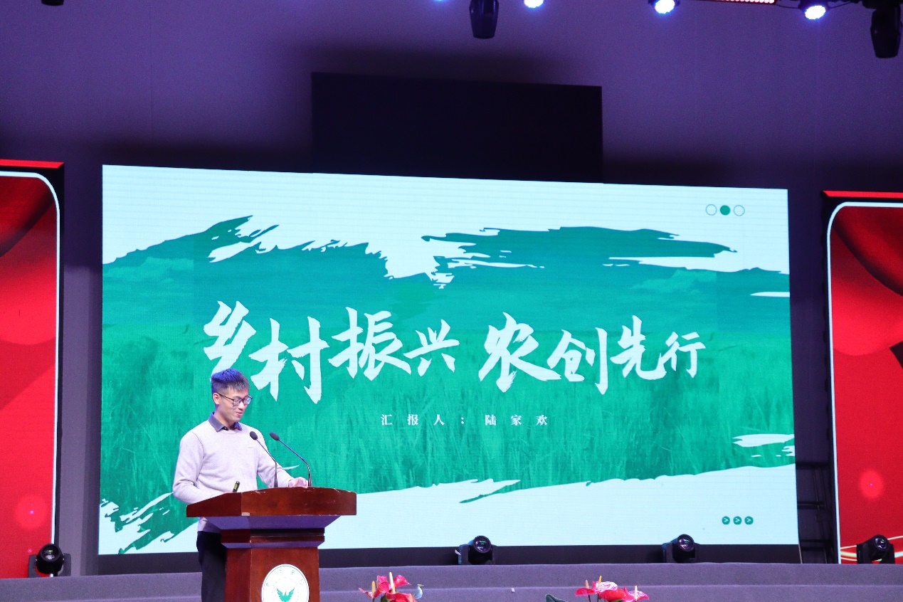 陆家欢校友回忆了自己在校时期丰富而精彩的校园生活,讲述了自己“结合自身所学专业,发挥创新意识,刻苦钻研,敢于试验,打造以水产养殖为特色主导的休闲农业新业态”的创业初衷,并对母校进行了祝福。