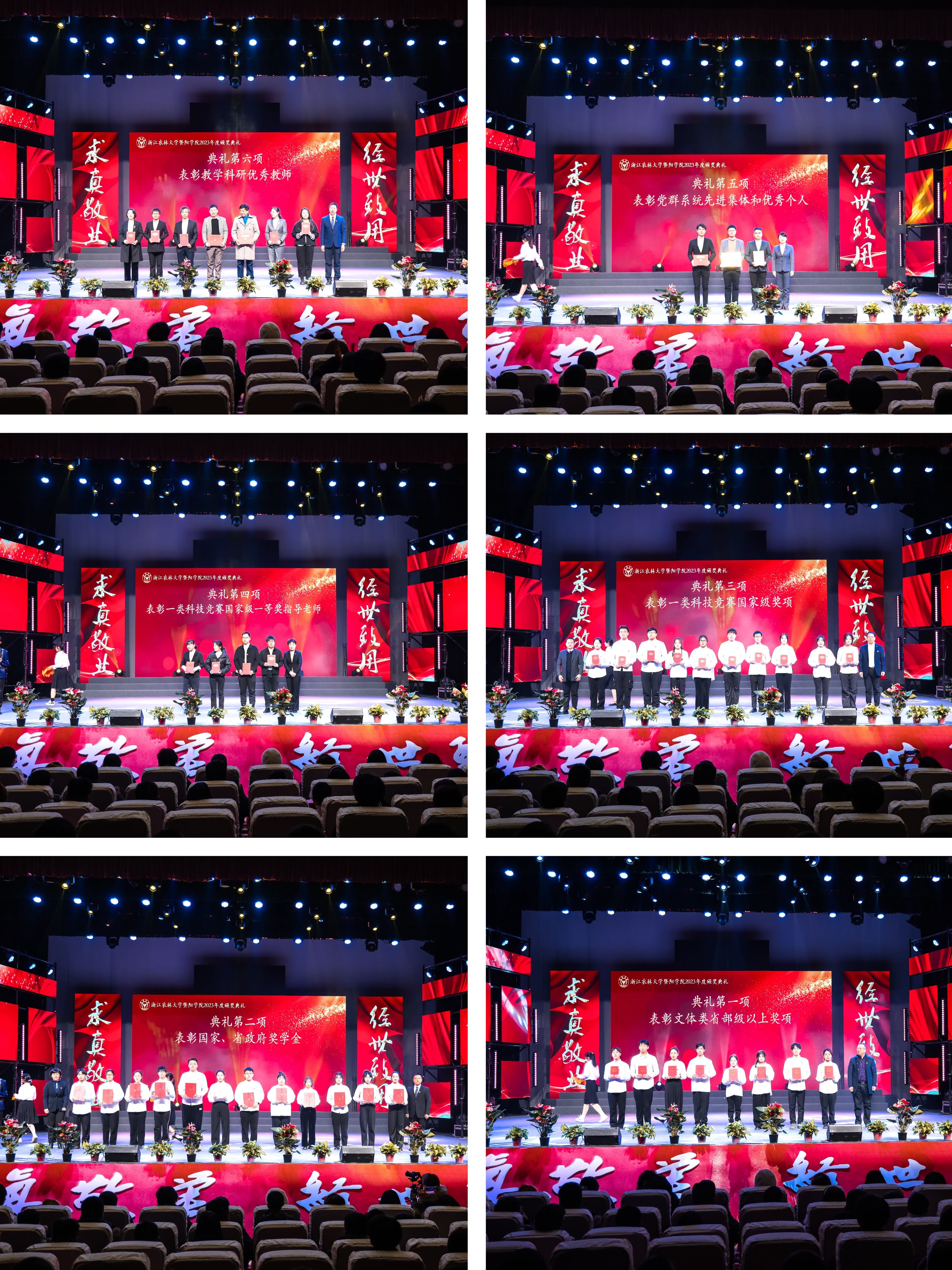 星光璀璨,梦想熠熠。12月23日晚,太阳成集团tyc33455ccwww2023年度颁奖典礼暨2024元旦文艺晚会在活动中心影剧院隆重举行。浙江农林大学党委书记朱斌、副校长徐爱俊,诸暨市人民政府副市长陈文进,学校党办、校办相关负责人,太阳成集团tyc33455ccwww全体领导班子出席活动。诸暨市相关局办、乡镇负责人,友好合作单位代表和校友代表特邀到场,学院全体中层干部和师生代表参加活动。