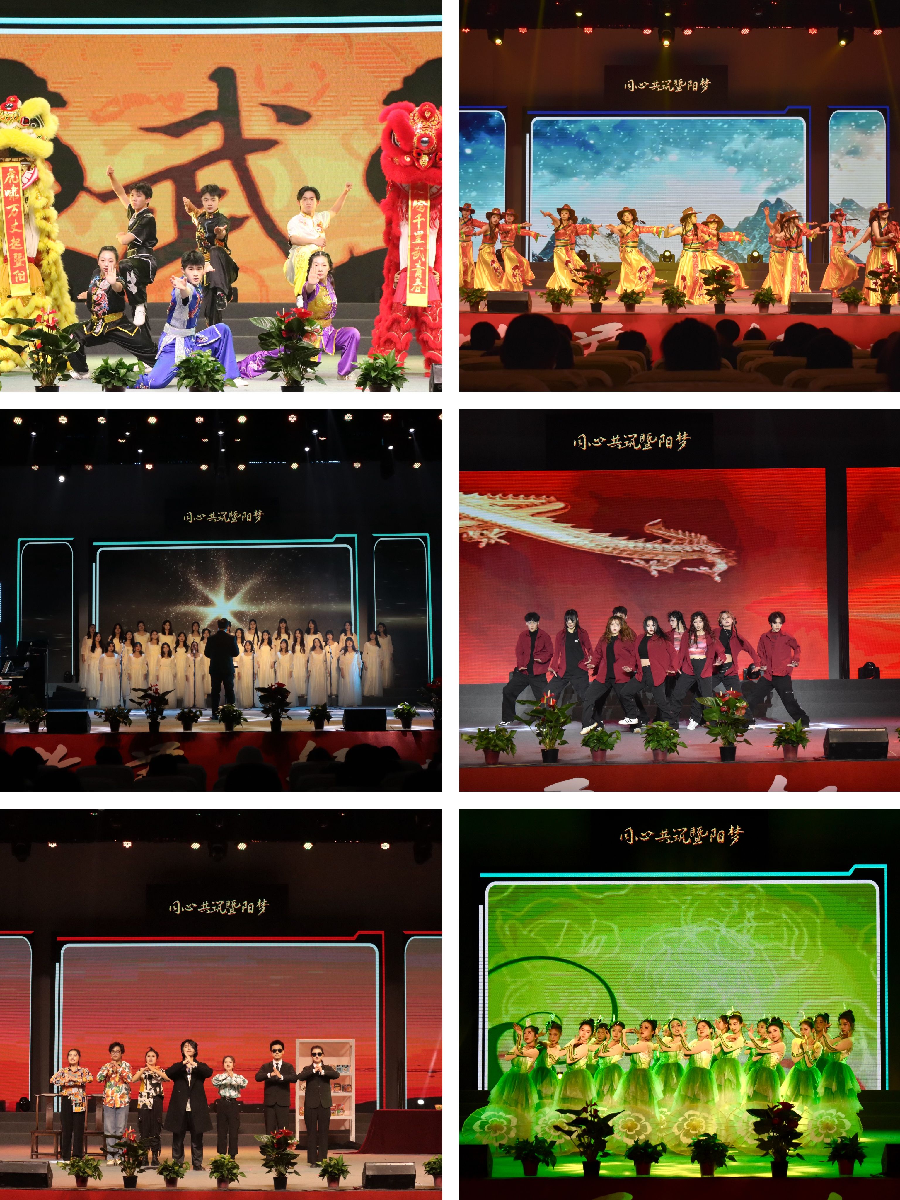 元旦文艺晚会以“同心共筑暨阳梦”为主题,以一曲《跨越山峰》拉开序幕。节目精彩纷呈,有展现青春热情的歌舞《青春向太阳》,有领略古人过年时热闹场景的汉服民俗表演《华韵入梦,改岁迎新》,有青年教师热情洋溢的爵士舞《爱的莫吉托》,有体育育人展示的武术作品《武动暨阳》,有婉约与热情并存的舞蹈《康定情歌》和《茉莉花》,有热情似火的街舞《炎黄子孙》,有优美的女生合唱《想你的365天》,有啼笑皆非的小品《减肥帮往事》,有诸暨市文化馆选送的地方文化精品西路乱弹《西施》。晚会上还特别倾情上演了表达学院师生躬耕教坛、尚贤耕读的付出与努力,致敬师生默默耕耘的原创歌舞《耕耘》点燃了每一位暨阳人的心。