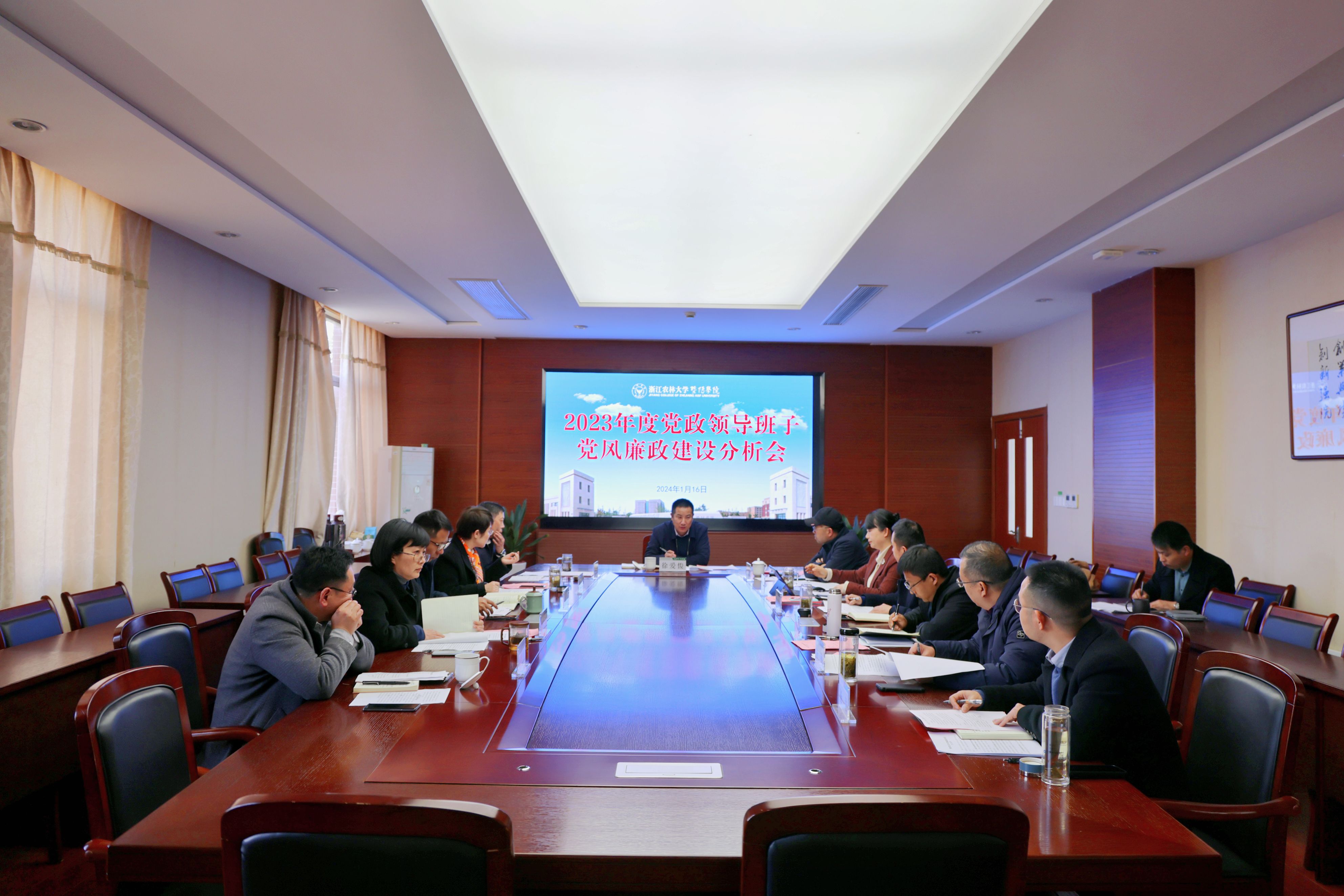 为深入贯彻落实党的二十大战略部署,纵深推进全面从严治党和“清廉暨阳”建设,1月16日,学院召开2023年度党政领导班子党风廉政建设分析会。浙江农林大学副校长徐爱俊出席会议,校纪委副书记、纪检监察室、巡察办主任章继胜到会指导。学院党政班子成员参加会议。会议由学院党委书记洪昀主持。