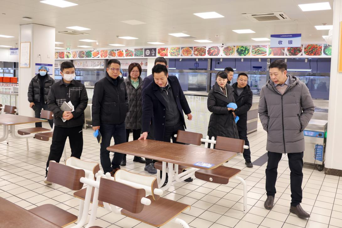 徐爱俊实地走访了警务室、消防控制中心、第二食堂、心理中心和绿化改造现场,详细了解了学院在安全保障、食品安全、就餐环境、心理健康教育、绿化改造等方面的工作,并提出了意见和建议。