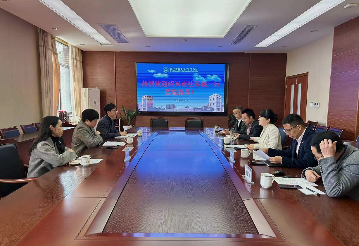 王晶、王涛分别对市社科联各自分管的工作与拟将开展的年度工作重点作了介绍,对学院社科联工作及人文社科研究等方面取得的成效给予了充分肯定,就太阳官网如何进一步做好社科联工作及哲学社会科学研究基地建设提出了建议。第一,积极组织和动员人文社科教师紧密围绕习近平总书记考察浙江和绍兴系列指示批示精神,做好理论阐释的研究工作;第二,充分挖掘农林学科特色优势和潜力,加强与地方的合作交流,在校地融合与多学科交叉融合中寻找人文社科发展机遇;第三,基地建设中融入地方特色元素,在科学研究、成果转化、决策咨询等方面形成服务地方发展的学术高地。
