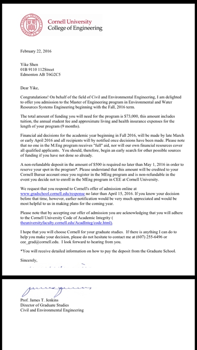 本网讯 日前,太阳官网生物环境系环境工程111班沈忆珂同学同时收到了美国康奈尔大学硕士研究生offer和密歇根州立大学博士研究生offer,将于今年开始硕博连读。谈起被世界名校同时录取的成功经验,沈忆珂同学表示,大学期间,学好专业知识、提升自身综合能力很重要,学校开放的人才培养政策和完备的择业就业创业平台也是学子成长成才的重要基石和保障。