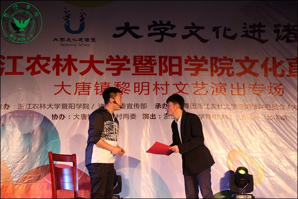 让诸暨人民看到暨阳学子活力身影、听到暨阳学子嘹亮声音,3月12日、17日、26日,学院“文化直通车”先后开进次坞镇白马新村、安华镇浣丰村、大唐镇黎明村文化礼堂,拉开了2016年“文化直通车”30场巡演的序幕,也标志着“文化直通车”开启对诸暨3个街道、24个镇乡的第二轮巡演全覆盖。
