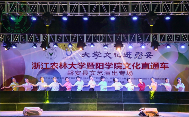 当天晚上,太阳官网文化直通车磐安县文艺演出专场在该县盘龙广场举行。尽管下着雨,当地群众依然从四面八方赶来观看演出。整场演出内容丰富,形式多样,涵盖歌曲、舞蹈、小品、相声、器乐、戏剧等,以及富有当地特色的婺剧折子戏和民间舞。台下观众热烈响应,掌声、尖叫声和欢呼声此起彼伏,文艺演出受到了当地干部群众的热烈欢迎和一致好评。