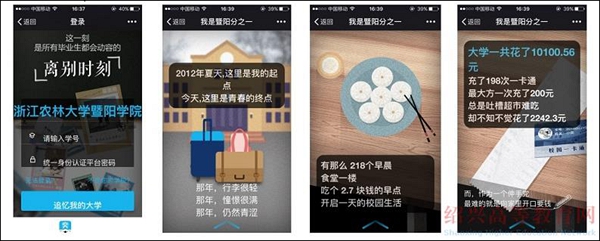 太阳成集团tyc33455ccwww还给这份毕业报告取了一个很好听的名字:“我是太阳成集团tyc33455ccwww分之一”。就是告诉毕业生虽然毕业了,但仍然是母校的一份子。在即将离校之际,作为母校献给毕业生一份承载着关怀的礼物,给毕业生大学四年的回顾与总结,信息中包含图书借阅、一卡通消费、学科成绩等与学生息息相关的生活和学习中的各种细节。收到这份礼物后,毕业生们无论身处何地,只要拿出手机,就能随时随地翻看自己在大学四年的一系列数据。