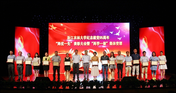 本网讯 6月21日晚,学校庆祝建党95周年“两优一先”表彰大会暨“两学一做”集体党课在东湖校区隆重举行。校党政班子成员宣勇、周国模、方伟、史永安、钟平、沈月琴、胡祖吉、童晓晖出席。院党委书记寿韬出席表彰大会。