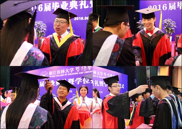 院长石道金发表讲话。他代表学院向圆满完成学业的2016届毕业生表示热烈的祝贺,向精心教育同学们的老师、辛勤养育同学们的父母致以崇高的敬意,向关心关爱同学们的社会各界、浙江农林大学、诸暨市委市政府表示衷心的感谢。并同在场的全体毕业生一起总结回顾了过去四年学院为培养学生所进行的教育教学改革,以及学生为学院改革、建设、发展所作出的努力和贡献,对同学们取得优异成绩和精彩表现给予充分肯定、感谢和祝贺。