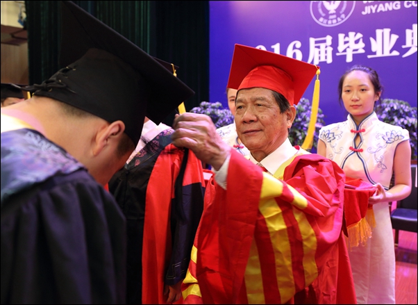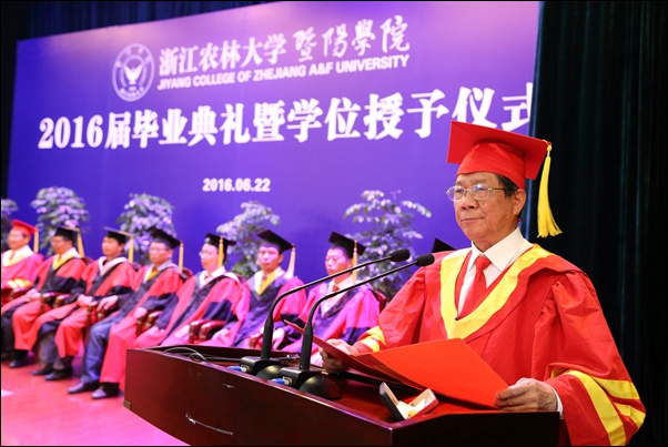 “时间过得很快,太阳成集团tyc33455ccwww迁址诸暨办学已经三年了,每年我都来送同学们。看到太阳成集团tyc33455ccwww快速发展,看到一届又一届朝气蓬勃,一届比一届优秀的毕业生走出校门、走上社会,我心里感到由衷地高兴。”孙优贤院士在毕业典礼上致辞,热烈祝贺2016届同学们顺利毕业。
