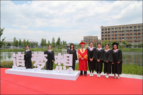 典礼仪式结束后,孙优贤院士和学院领导来到天目湖边,同毕业生和家长们合影留念。“追梦想、致青春、爱暨阳”、“巨型毕业证书”、“不拍照、不毕业墙”在学院为毕业学子们精心设计的毕业留影区,穿着学士服的毕业生们纷纷拿起相机、手机和自拍杆,在生机盎然的校园里同院士、院长、书记合影,留下人生最难忘的一刻。毕业生家长也纷纷参与其中,国际经济与贸易121班李吉同学的父亲还现场向学院捐赠自己所绘书画作品,以表对孩子的栽培之恩,祝愿学院未来发展更美好。