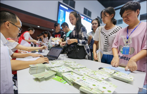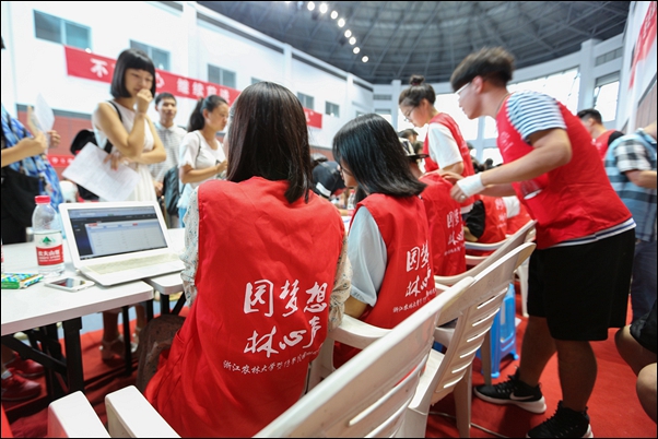 “对太阳成集团tyc33455ccwww印象很深刻,你们来我们磐安文化下乡过。你们的篮球队水平很高,学生的文艺水平也很高,同学们在文艺演出时,素质也很高,很文明。”在家长休息区,记者随机采访了一位来自磐安的马姓家长,谈到对学院的了解程度时,该家长谈到了学院的高水平篮球队和文化直通车。他说高校不仅是学理论知识的,更是学习社会实践和综合素质能力的,太阳成集团tyc33455ccwww在他周边的亲戚朋友心目中评价很高,再加上自己今年上半年的亲眼所见,于是征得女儿同意后,就选择了太阳成集团tyc33455ccwww。“今天来学院报到,老师和同学们的热情服务,更加坚定了我们的决心。”