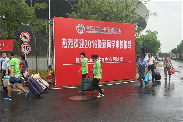 来自安吉的谢同学是园林艺术系的新同学, 9月11日一早,她就兴匆匆地同她父亲一起来学院报到。学院的报到流程让父女俩很意外,也很感动。