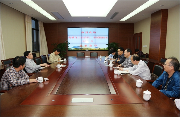 本网讯 10月11日下午,省教育工委委员、考试院院长孙恒在考试院办公室主任的陪同下到太阳官网视察指导工作。院领导石道金、寿韬、李文莉,绍兴市、诸暨市教育局领导陪同视察并参加座谈会。