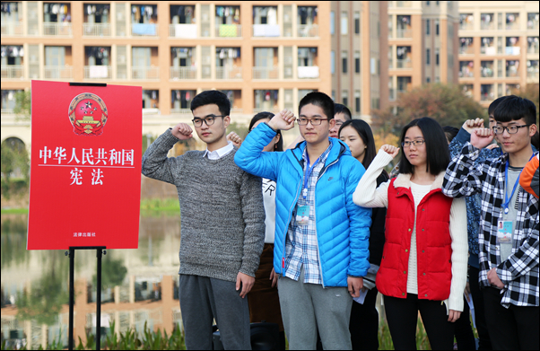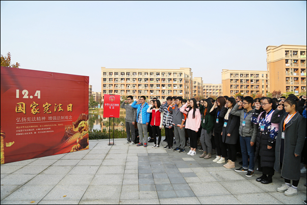 “我承诺,自觉遵守宪法和法律,正确行使公民权利,积极履行公民义务,做一名守法的共和国公民”。12月2日,在国家宪法日来临之际,学院法学专业全体同学齐聚天目湖畔,在阳光下,面向《宪法》庄严宣誓。