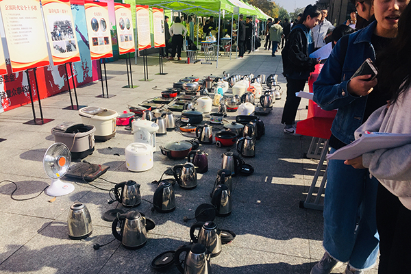 学生社区于近日在食堂广场举办“活力暨阳·和谐社区”学生社区文化节之“安全专喜遵章人,事故偏爱违纪者”违章电器展活动。工作人员将违章电器以及安全用电知识的展板进行集中展示,并向过往学生宣传介绍使用违章电器所带来的安全隐患。让广大同学充分了解违章电器的类别和危害,杜绝使用校园违章电器,促进营造健康成长环境的自觉自省。