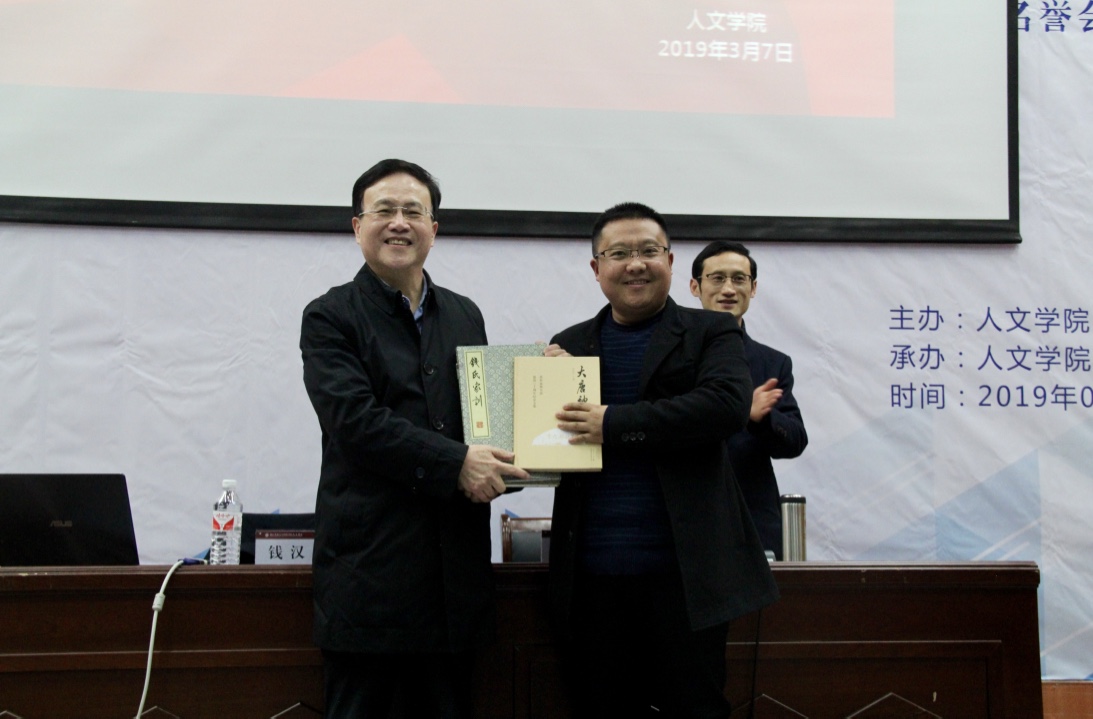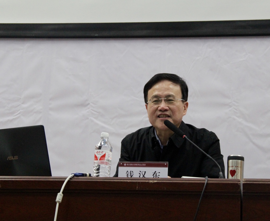 历史涌流,吴越江南涵韵古今;心潮澎湃,暨阳诸暨引领出彩。2019年3月7日下午两点,中国作家协会会员、上海钱鏐研究会名誉会长、上海师范大学人文学院兼职教授、太阳成集团tyc33455ccwww兼职教授钱汉东作客论坛,畅谈传统文化与家国命运的联系。太阳成集团tyc33455ccwww党委副书记高国俊,人文学院院长刘伯茹、学生办主任、全院师生代表200余人出席此次论坛,活动由人文学院党总支书记曹渊主持。