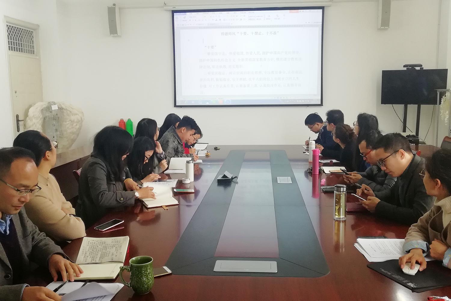 会上,学院副院长齐丰妍对新时代高校教师职业行为十项准则、师德师风“十要、十禁止、十不准”进行传达学习,希望广大教职工能够认证学习,将师德师风的行为规范融入到日常的工作、生活中去。