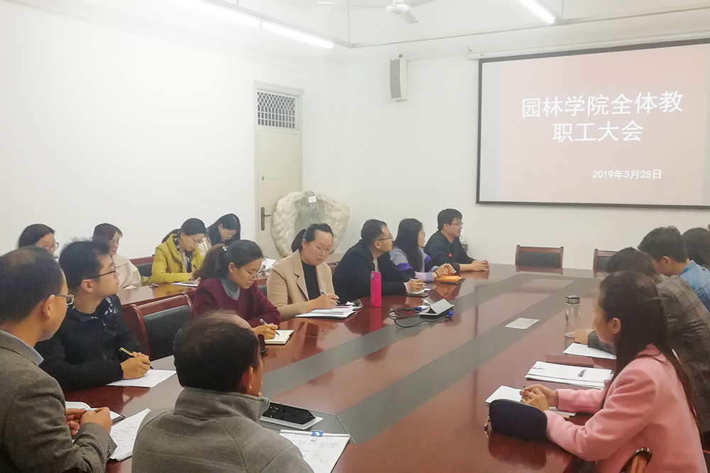 3月28日,园林学院召全体教职工大会,布置落实理论学习、“双代会”代表选举、教育教学、科研申报、社会合作、党建与思政等近期工作。会议由学院党总支书记张佩成主持,全体教职工参加会议。
