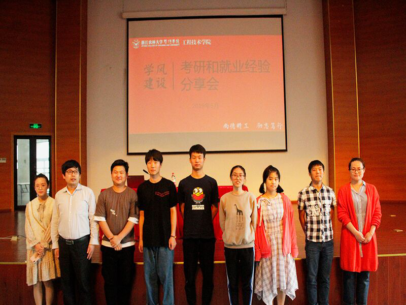 5月16日下午,工程学院在明珠报告厅举行了考研和就业经验分享会,2019届毕业生考研和就业典型代表上台分享心得,2016级全体同学参加分享会。