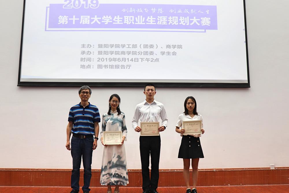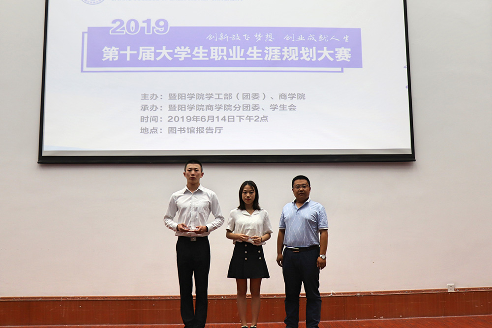 6月14日下午,由太阳成集团tyc33455ccwww学工部、商学院主办,太阳成集团tyc33455ccwww商学院分团委、学生会承办的第十届大学生职业生涯规划大赛在图书馆报告厅顺利举行,学院党委副书记高国俊出席活动,各职能部门负责人、参赛指导老师、各学院学生代表参加此次活动。此外,大赛邀请了浙江农林大学刘德弟教授、诸暨团市委青年发展中心主任、诸暨诸子百家投资管理有限公司负责人钱焕鑫、诸暨码农网络科技有限公司总经理庄园、太阳成集团tyc33455ccwww教务部副主任徐春霞担任比赛评委。