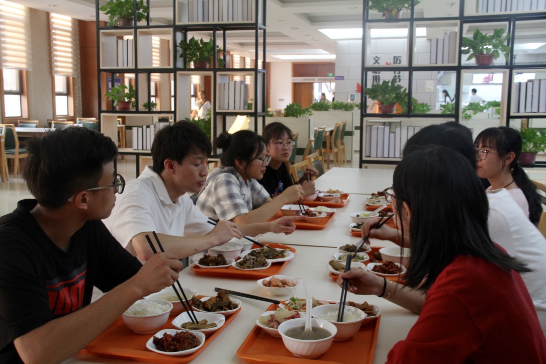 下午5时,为更好地拉近与少数民族的关系,让他们有一种“宾至如归的感觉,学院特别邀请了来自各个省份的几个同学代表在学校食堂共进晚餐。人文学院党总支书记宣王威、学工办主任石杭科和新生辅导员蒋颖一同参加。餐桌上,宣王威指出,学院对少数民族同学的报到工作高度重视,不仅提前选拔了高年级少数民族的同学作为作为少数民族新生到校时的志愿引导人,开展一对一贴心服务,还安排了此次“迎新晚餐”,拉近学校与少数民族同学的距离。大学对于同学们来说是一个崭新的环境,对远道而来的少数民族同学们而言更是一个陌生的环境。他希望通过这样的形式,让少数民族的同学尽快融入学校生活,融入集体。同时勉励同学们在大学里不能松懈倦怠,要保持奋进努力的上进心,多向学长学姐们请教,多和老师进行沟通与交流,多走向运动场进行体能锻炼。晚餐时间虽然短暂,但因为老师的关心,少数民族的同学们对未来的生活充满了信心,对学校的陌生感也有所减少。