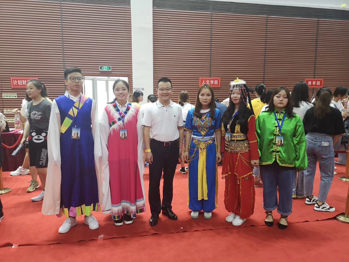 “手牵手,心连心”一场别开生面的欢迎仪式在网球馆展开。身着少数民族特色服装的志愿者们与少数民族报道新生手拉手围成同心圆,旋转并舞蹈,以此表达对报考太阳官网的少数民族新生们的热烈欢迎。党委书记潘国忠亲临现场,对少数民族同学进行了关心和慰问。据悉,人文学院2019级新生当中少数民族新生达到24名,为全学院最多。